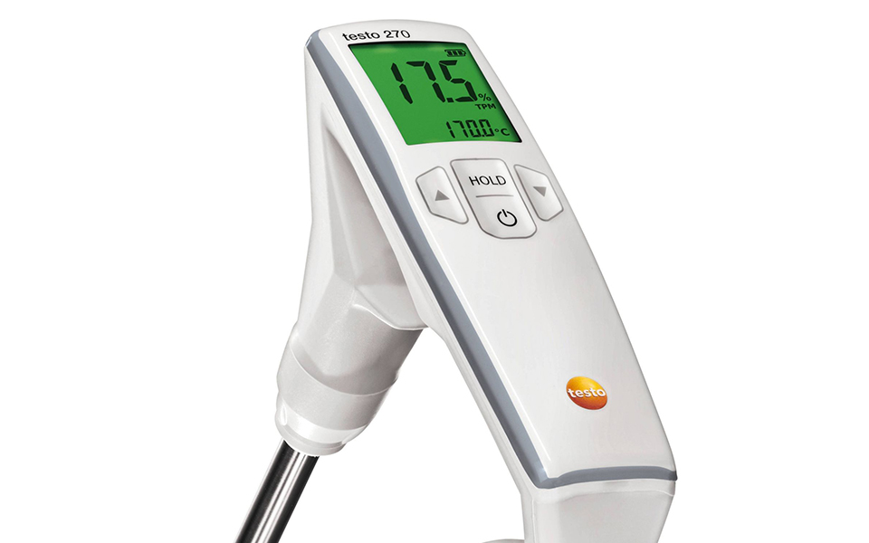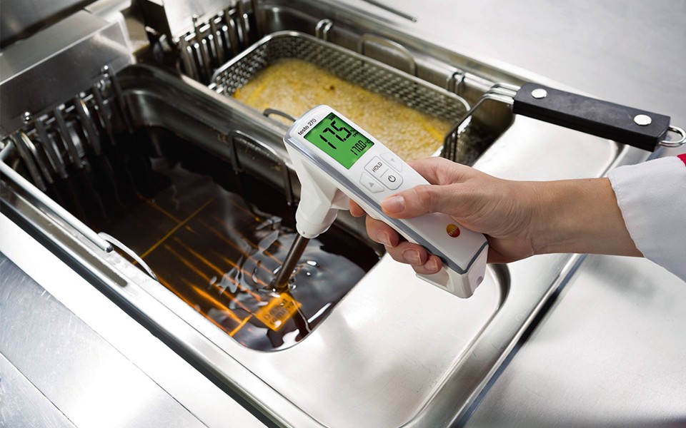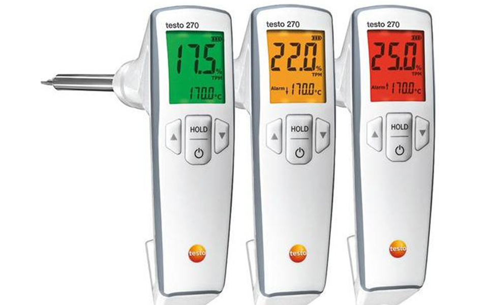外觀或氣味檢查不足以驗證食用油質量是否仍然良好。使用testo 270食用油品質檢測儀(煎炸油品質檢測儀)的連鎖飯店老板僅需在達到關鍵TPM數值后更換食用油。因此,他們僅需在必要時更換食用油,從而節約了相關成本。