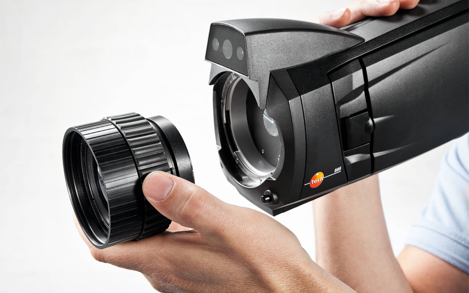 testo 890紅外熱像儀配有紅外超像素模塊鏡頭(可以選配廣角鏡頭、標準鏡頭、長焦鏡頭和超長焦鏡頭)