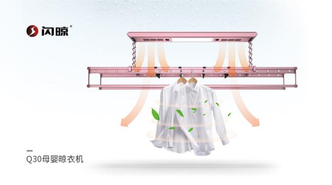 專為母嬰而生的閃晾Q30母嬰機(jī),集顏值與功能于一體,讓晾曬更便捷、讓衣物更干凈,真正意義上地讓媽媽們釋放雙手、解決晾衣的煩惱,再也不擔(dān)心寶寶衣物更換頻繁,再也不擔(dān)心衣服多沒(méi)地方晾,再也不擔(dān)心掛晾的衣服不干的難題。